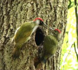 Boven: Het item waarin de groene specht haar jongen komt halen is een van de hoogtepunten uit de film. Dit uitvliegen duurde drie dagen en is zelden in ons land gefilmd.